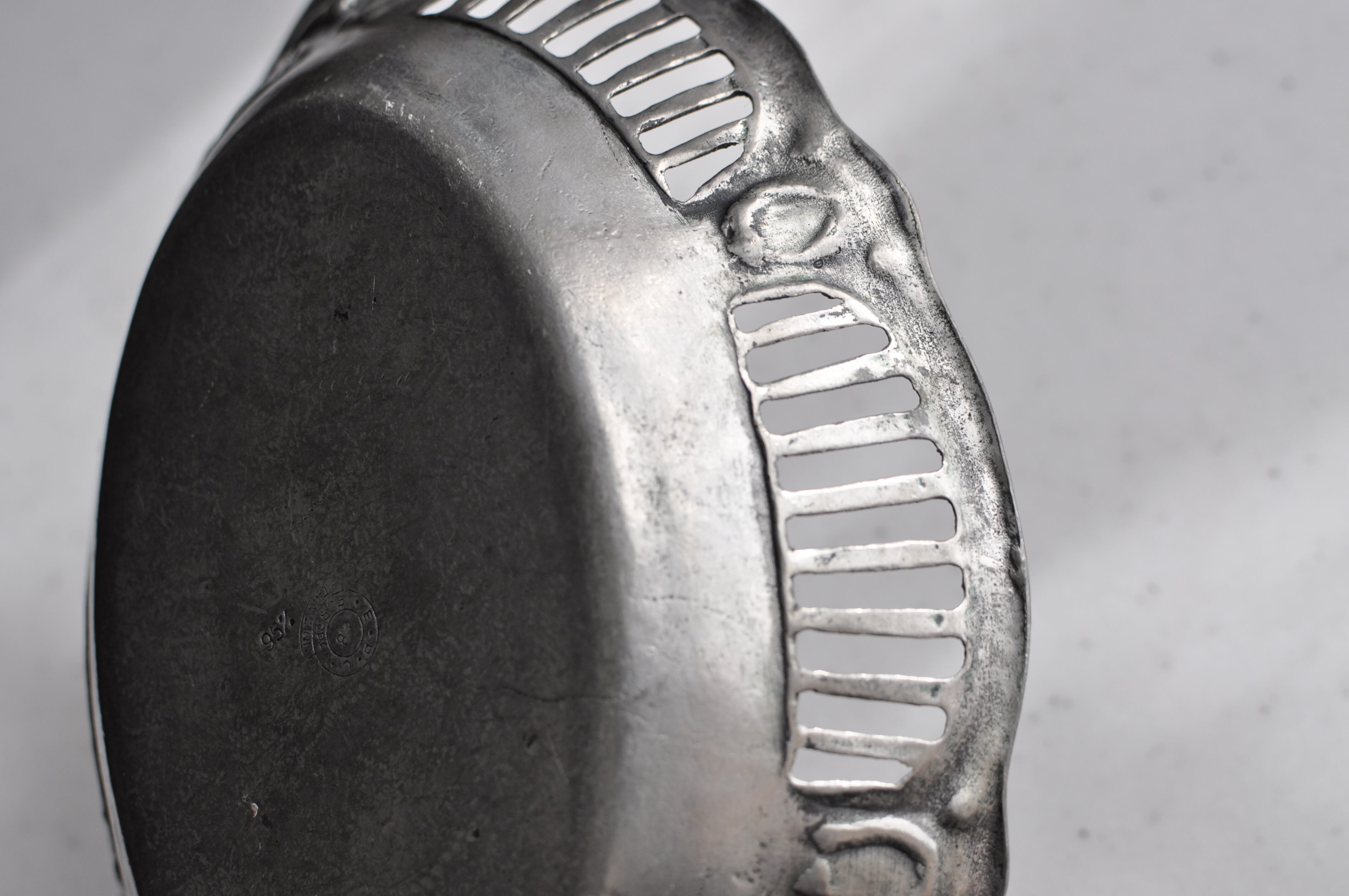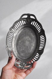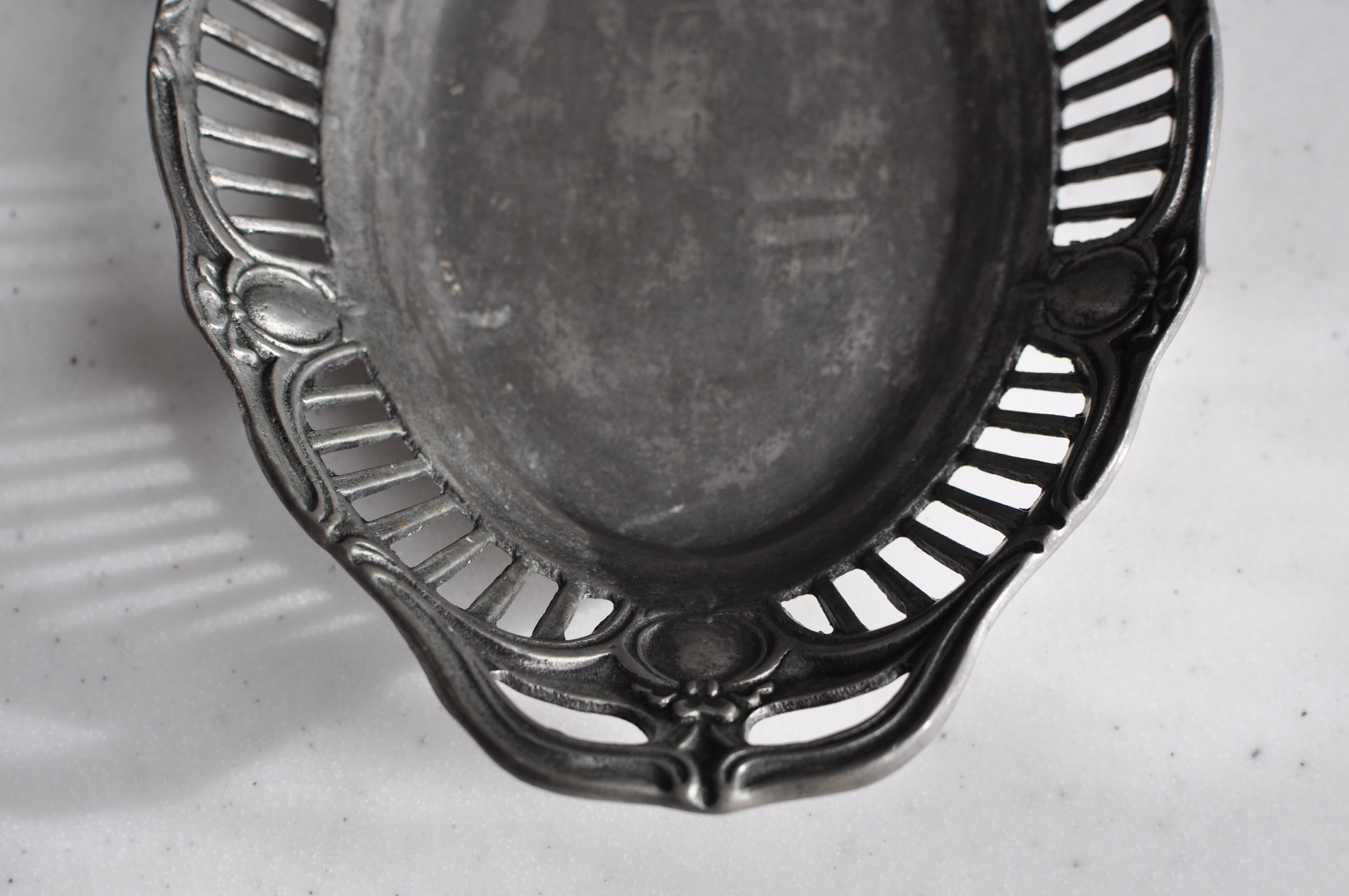 Rare エタン ピューター オーバル皿 バスケット (2883) フランス アンティーク