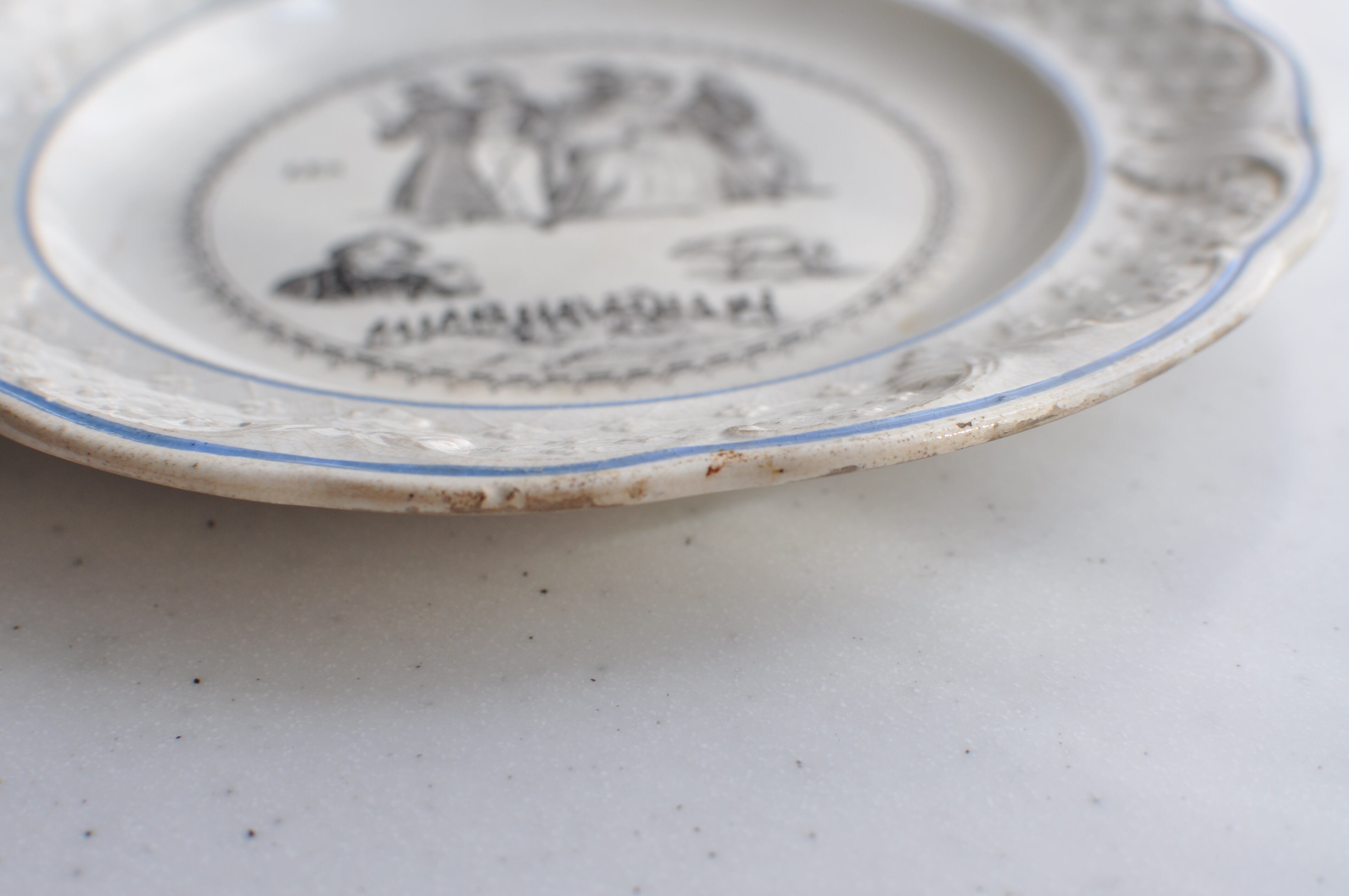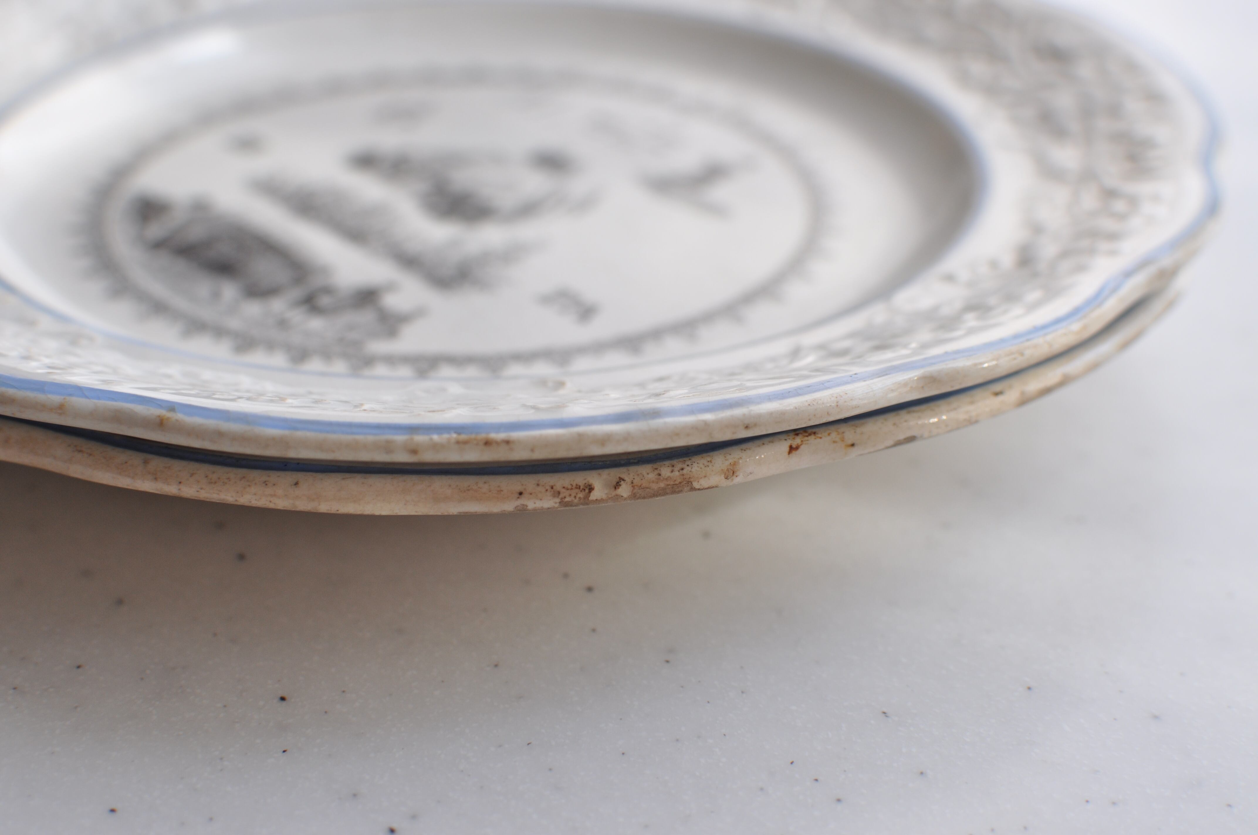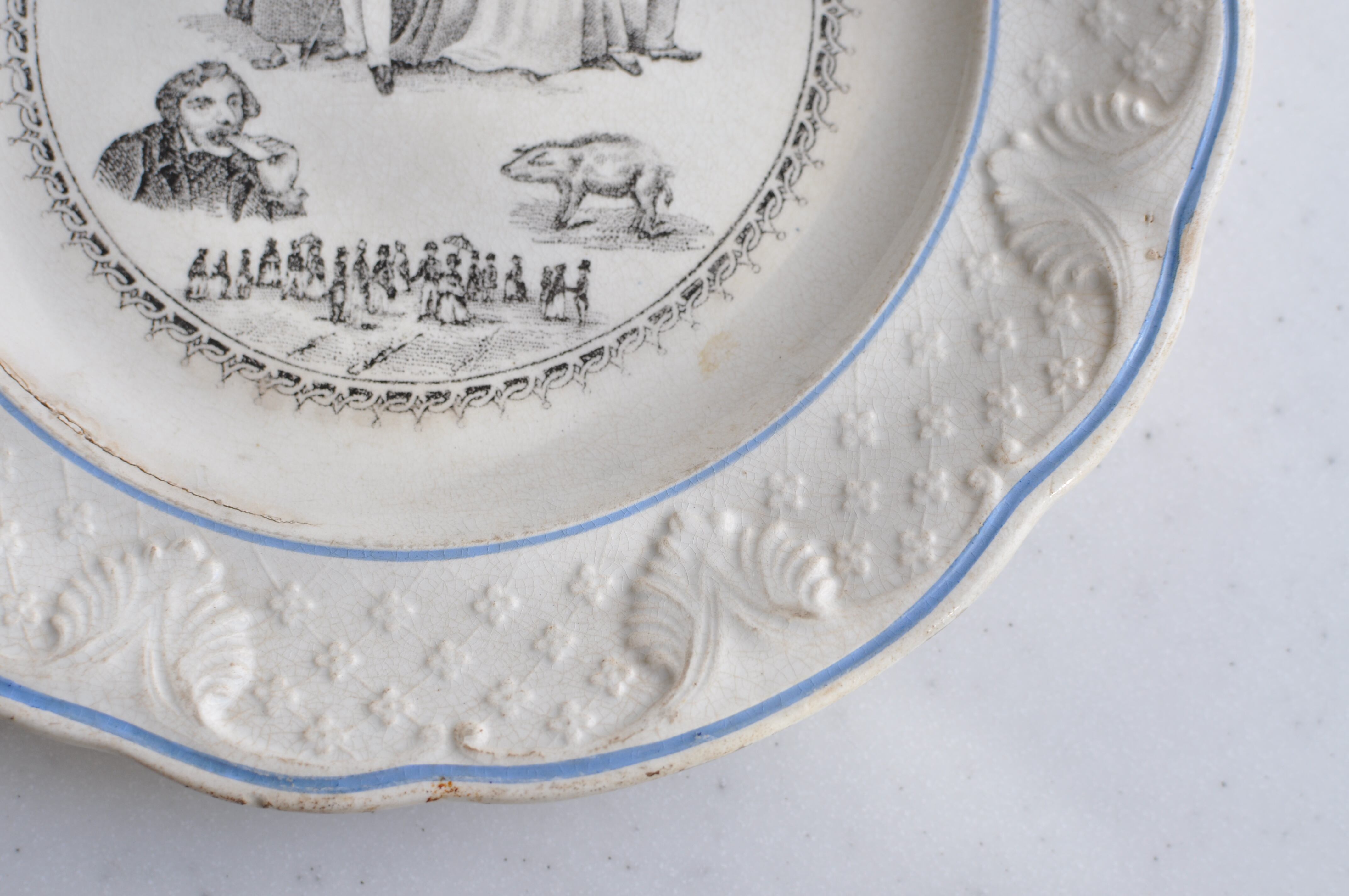 ☜≪追加画像≫ ★蚤の市 難あり 2客セット Choisy le Roi / レリーフの なぞなぞ絵皿 (1679) / フランスアンティーク