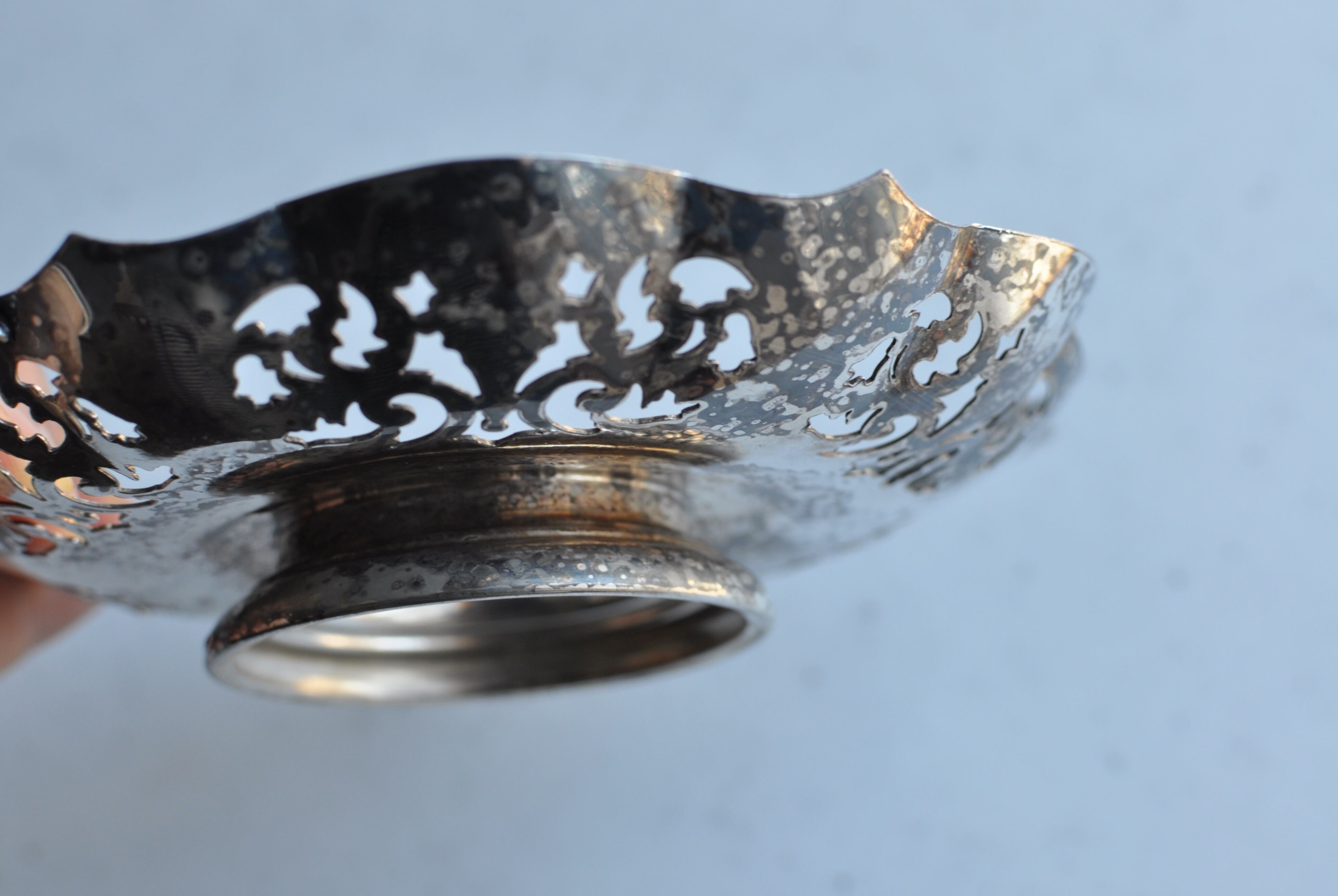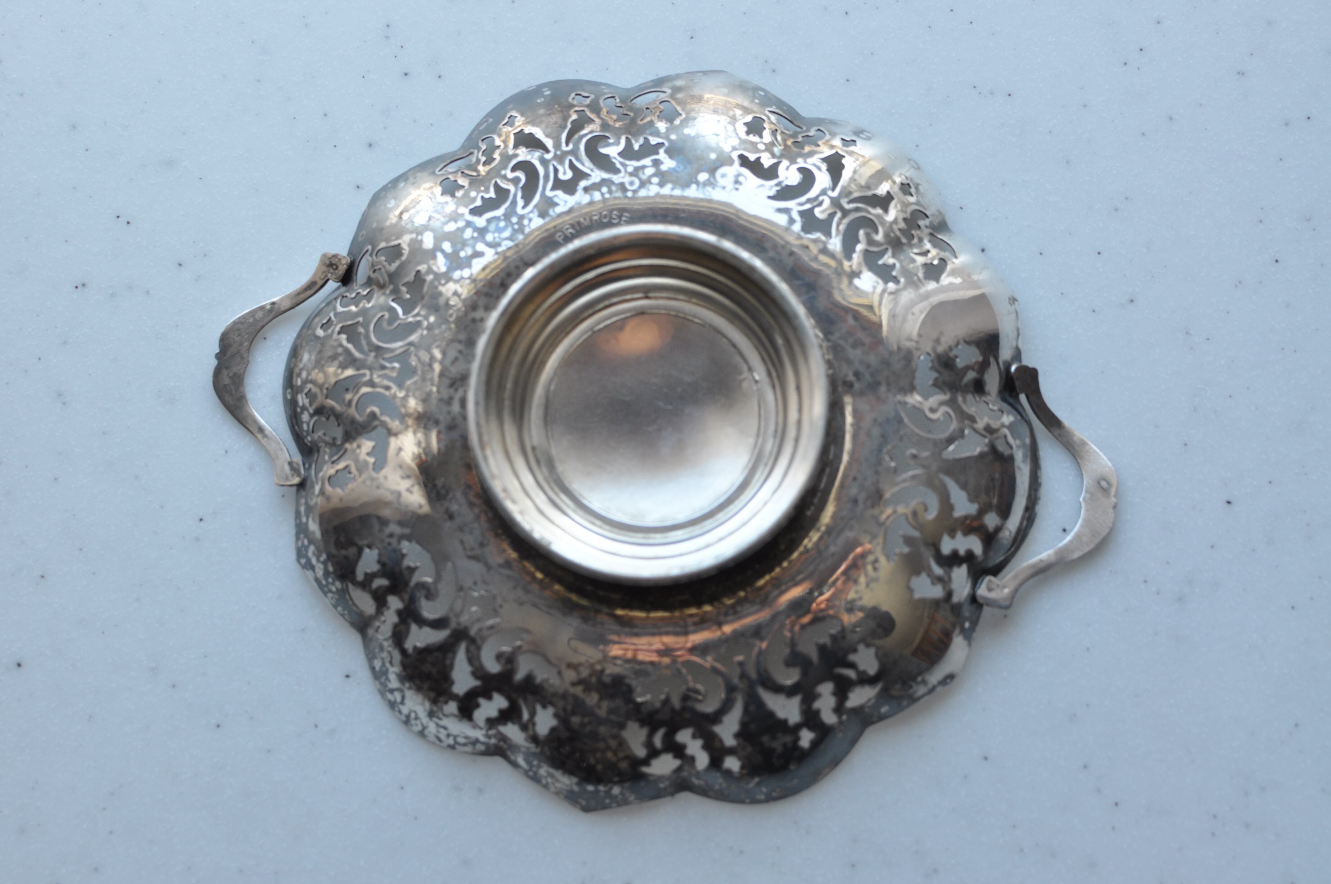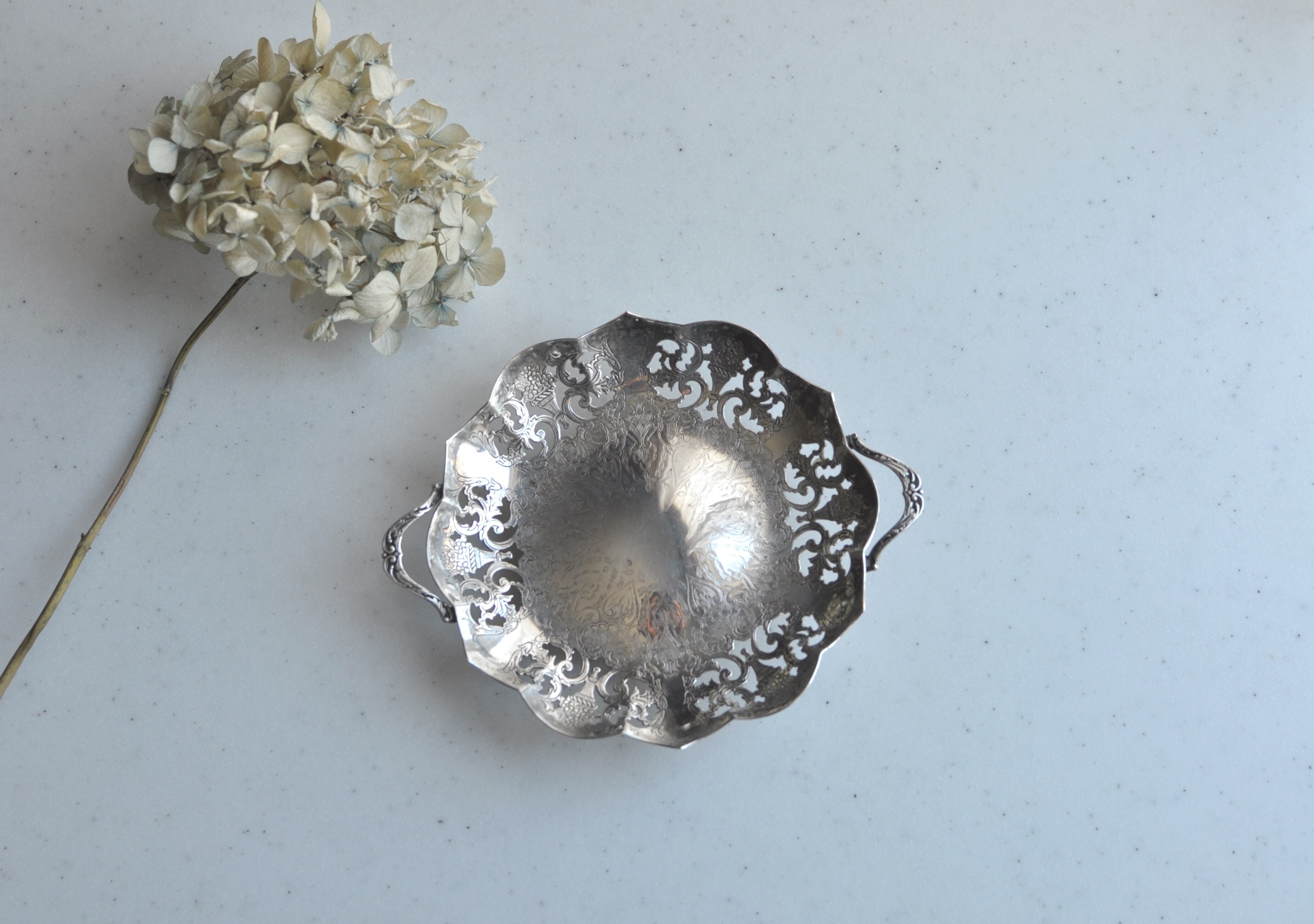 シルバー ハンドルつき 透かし模様の小さなトレイ コンポティエ(3520)