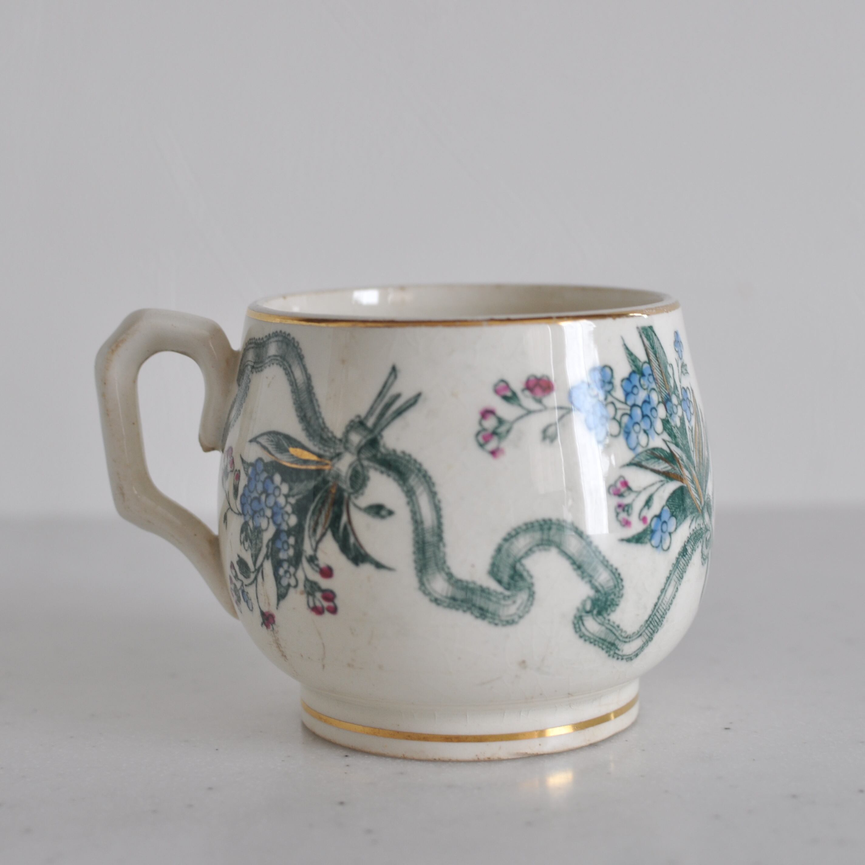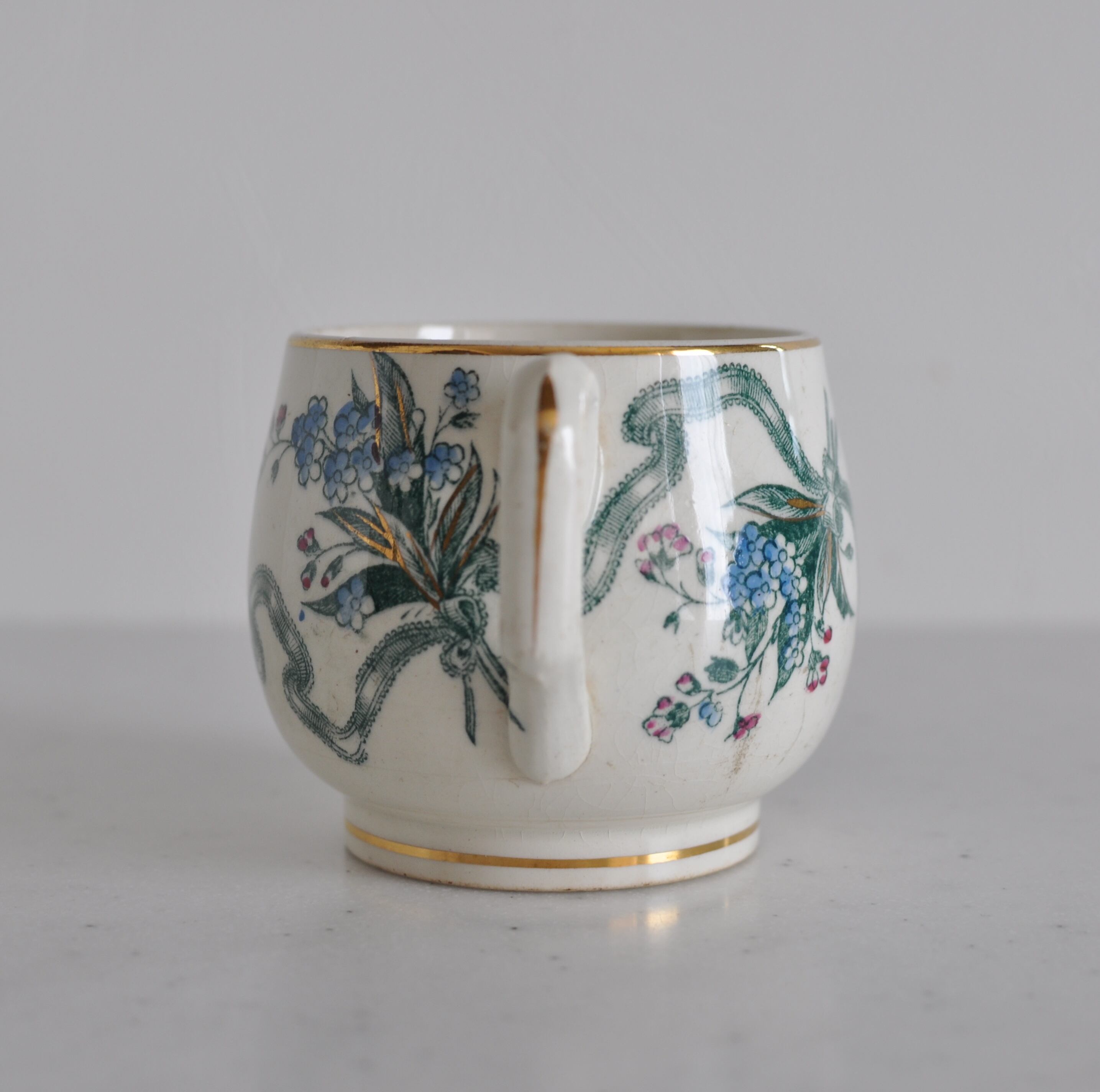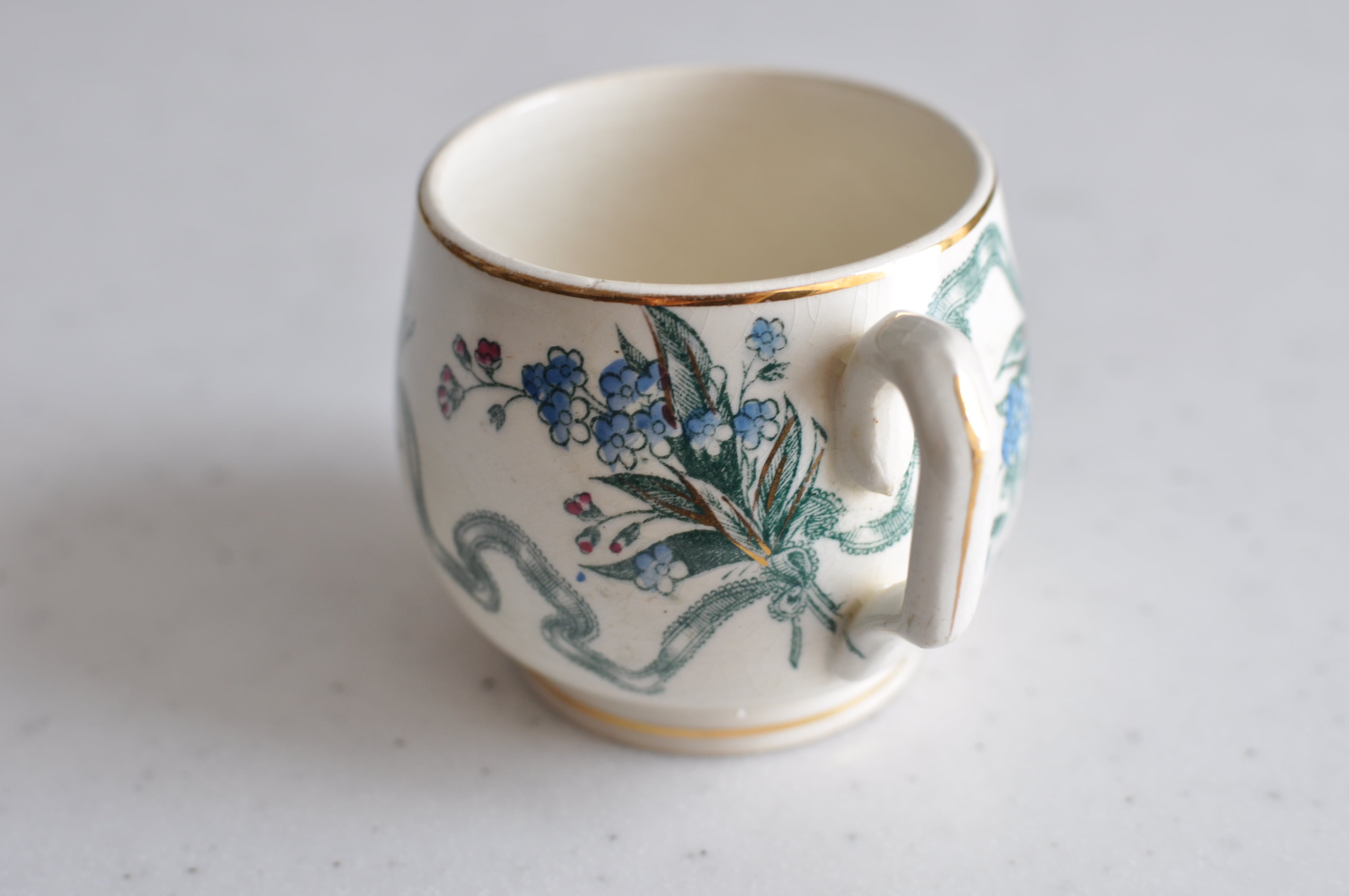 クレイユモントロー 花束とリボンのカップ (2871) フランスアンティーク