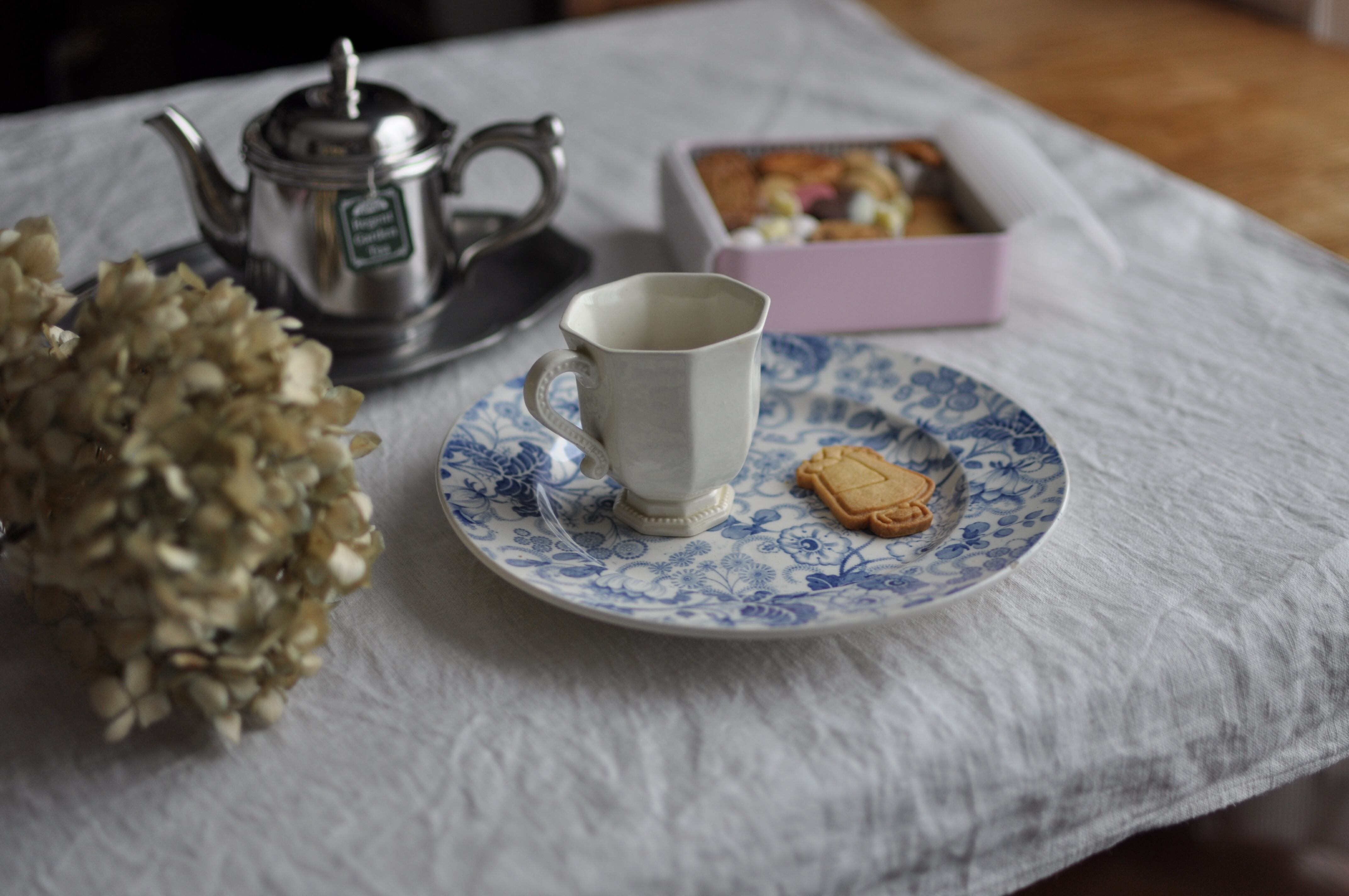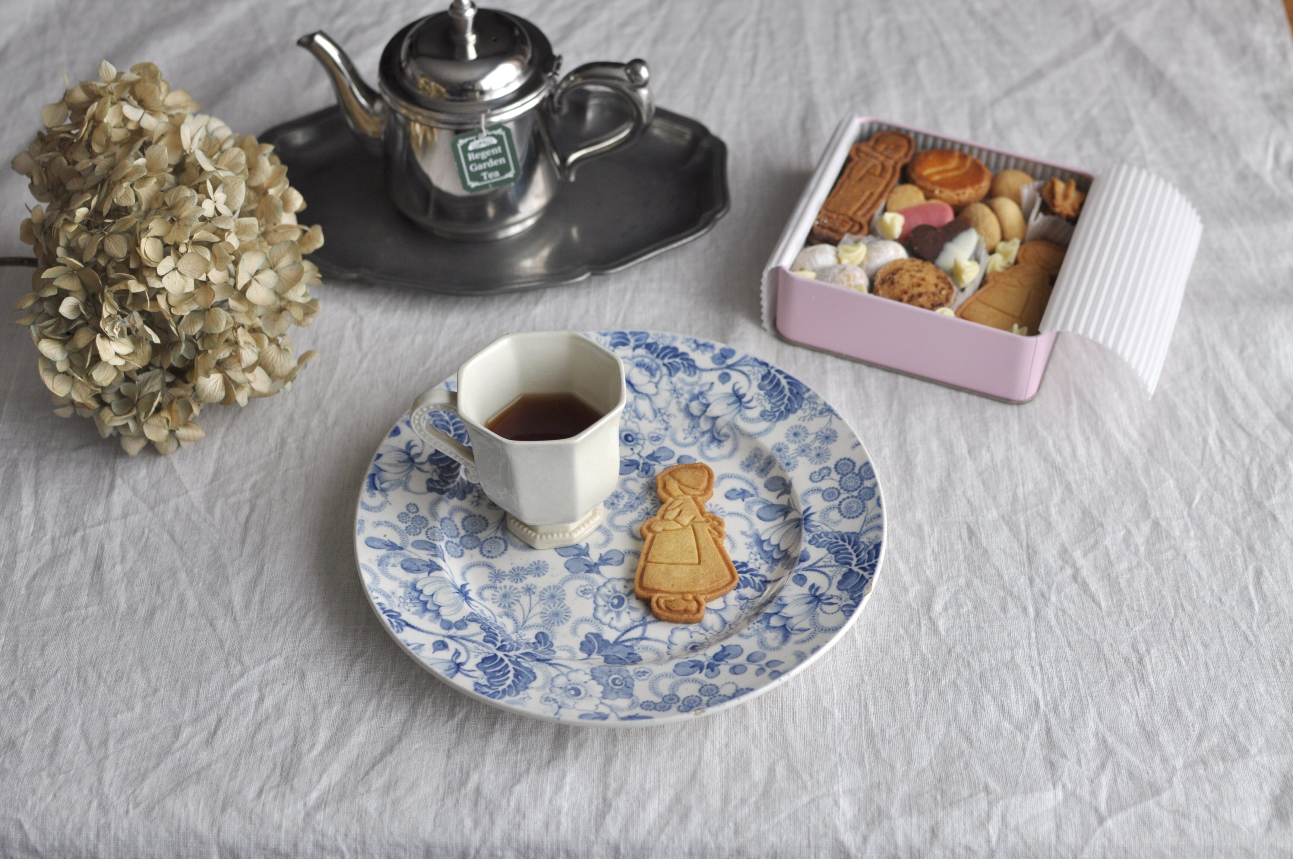 難あり:Bordeaux 青いお花 タピスリー柄 ペイズリー柄 のデザート皿 (3517R-B)