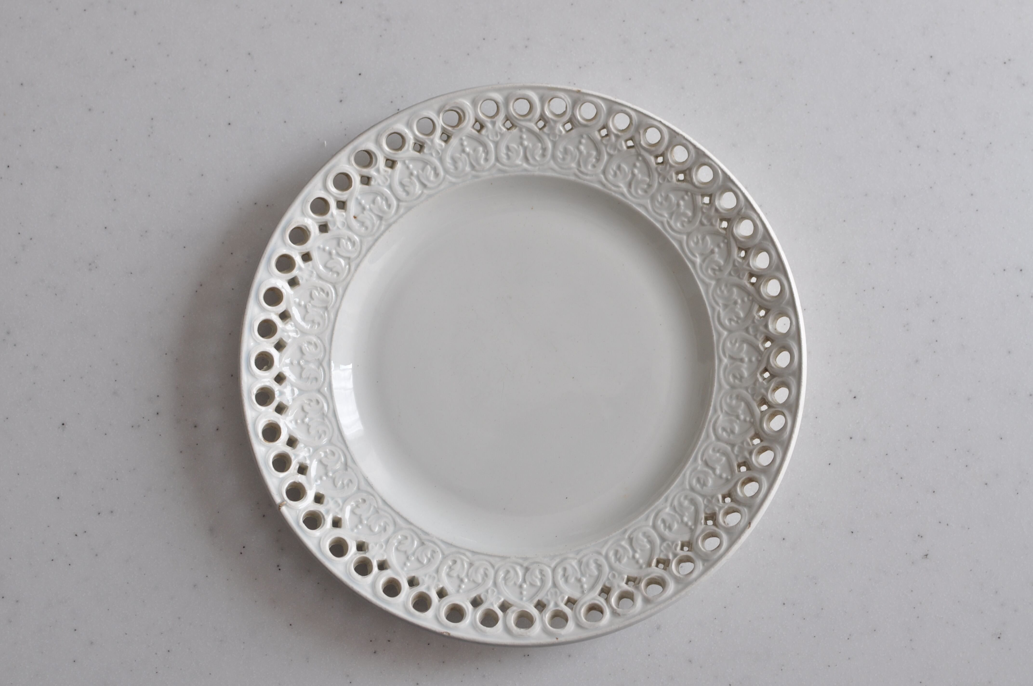 Creil montereau /クレイユモントロー カットワークのレリーフパニエ皿 (3564)