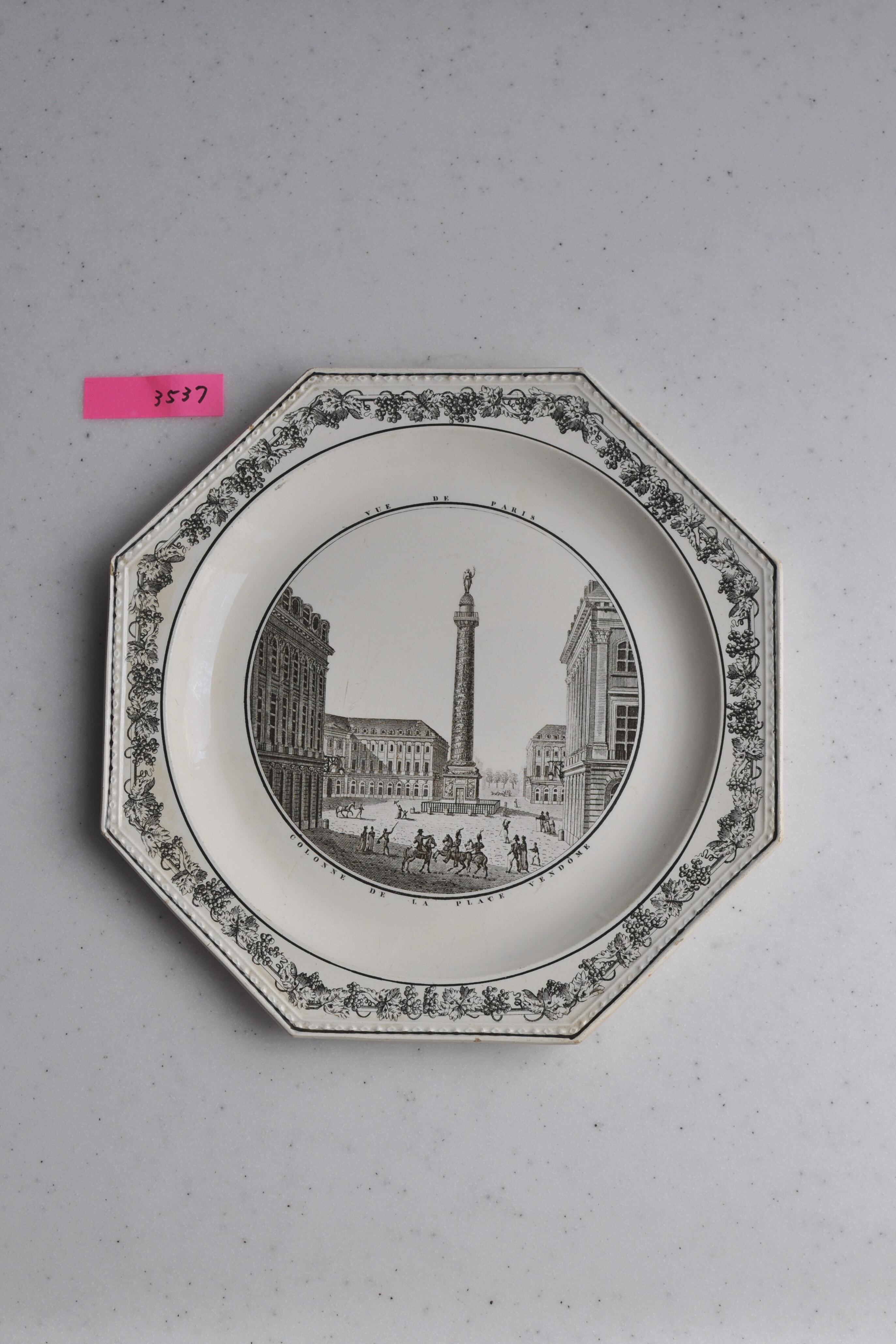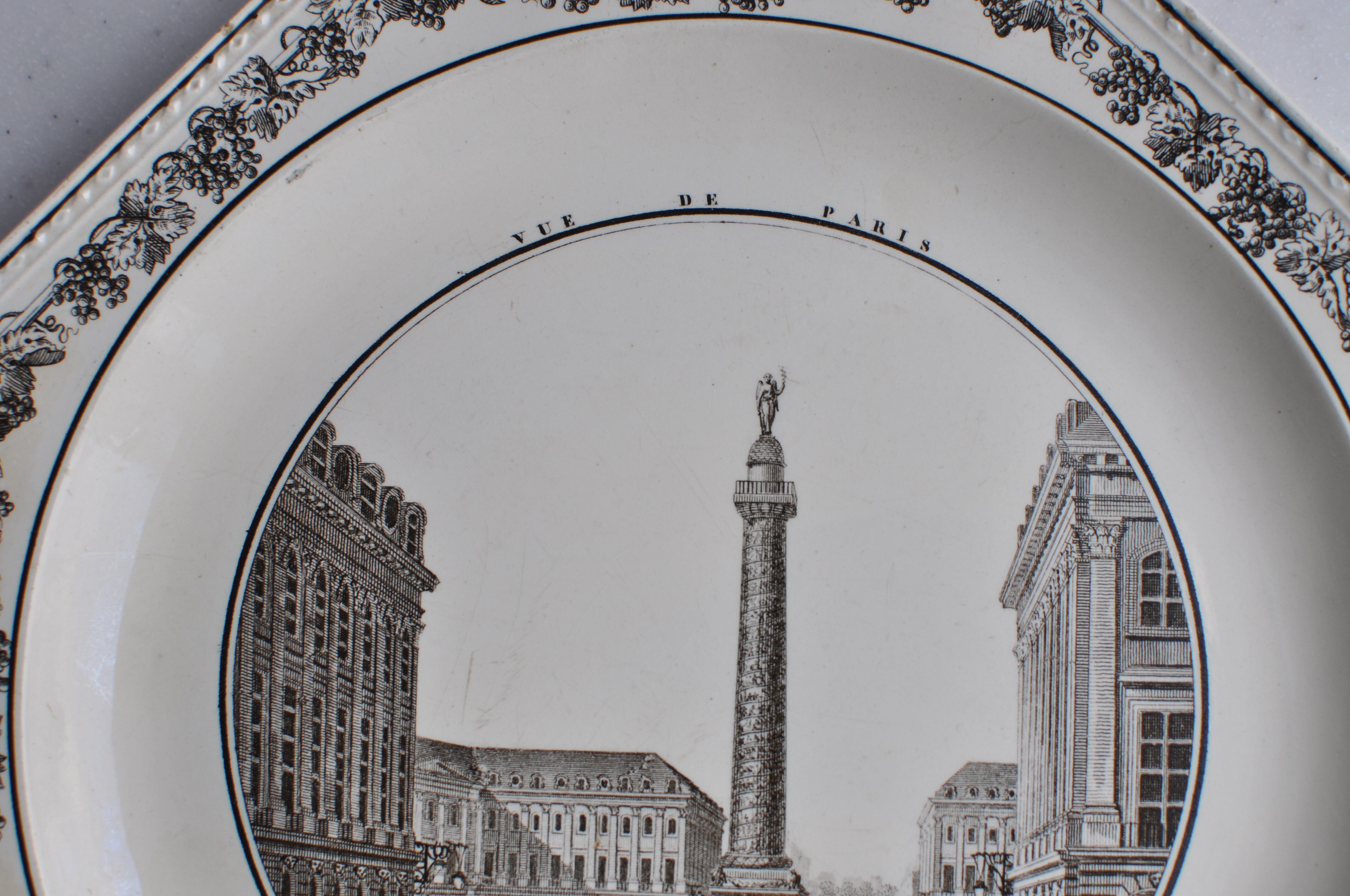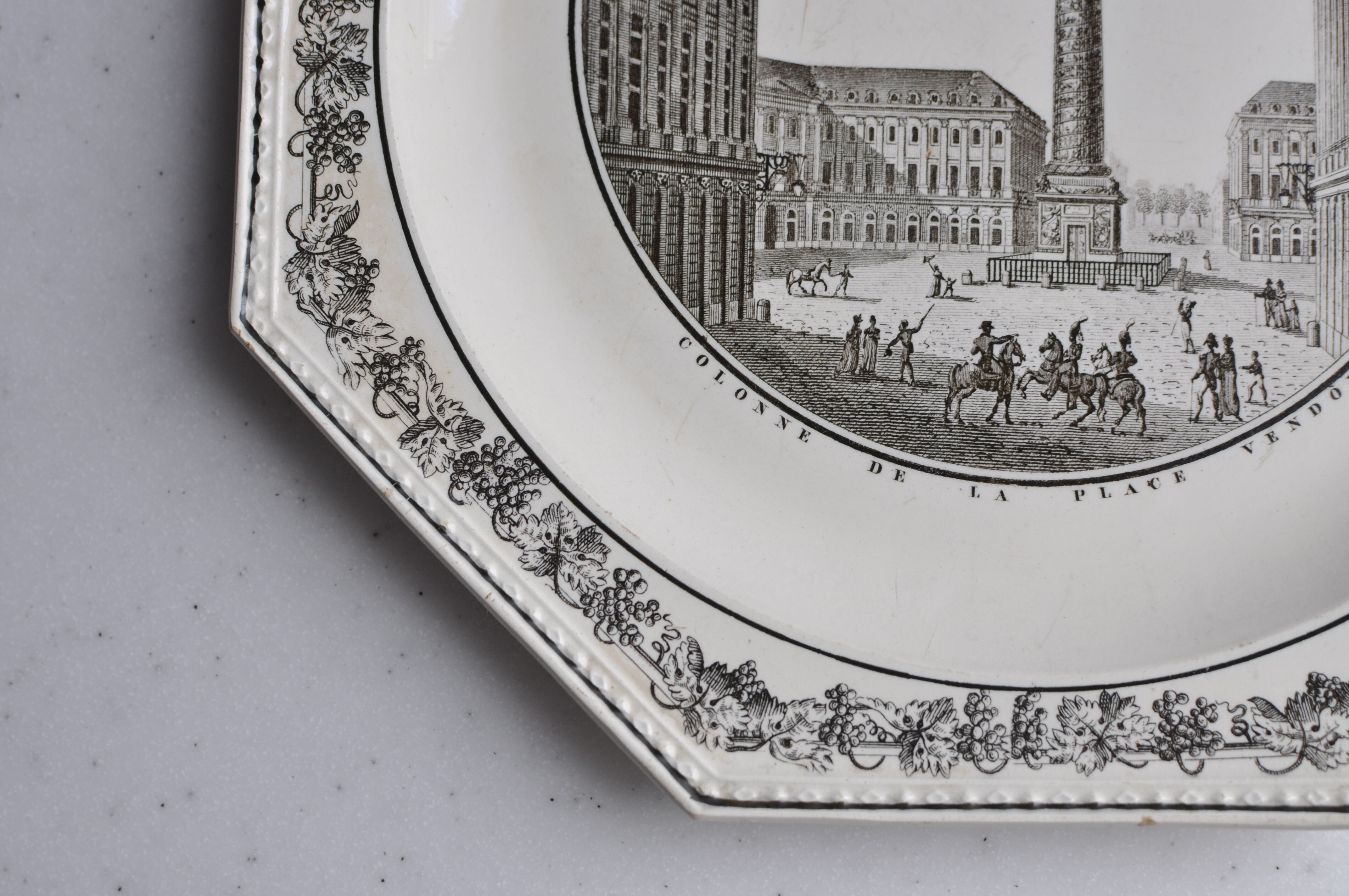 Creil / パリの風景 オクトゴナル グリザイユプレート (3537)