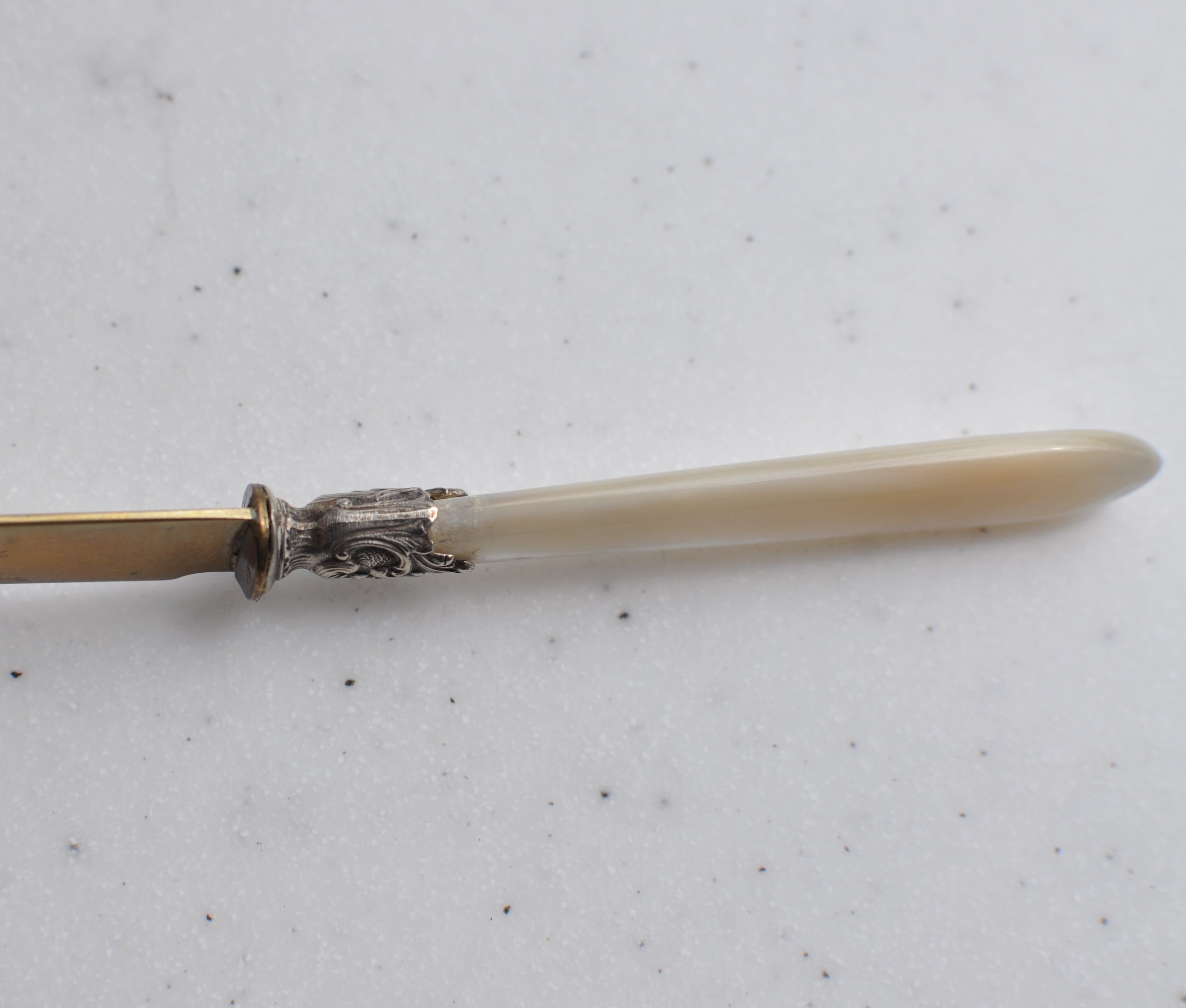 少々難あり 仏 白蝶貝・ 真鍮 デザート用 ナイフ&フォーク (3162-B)
