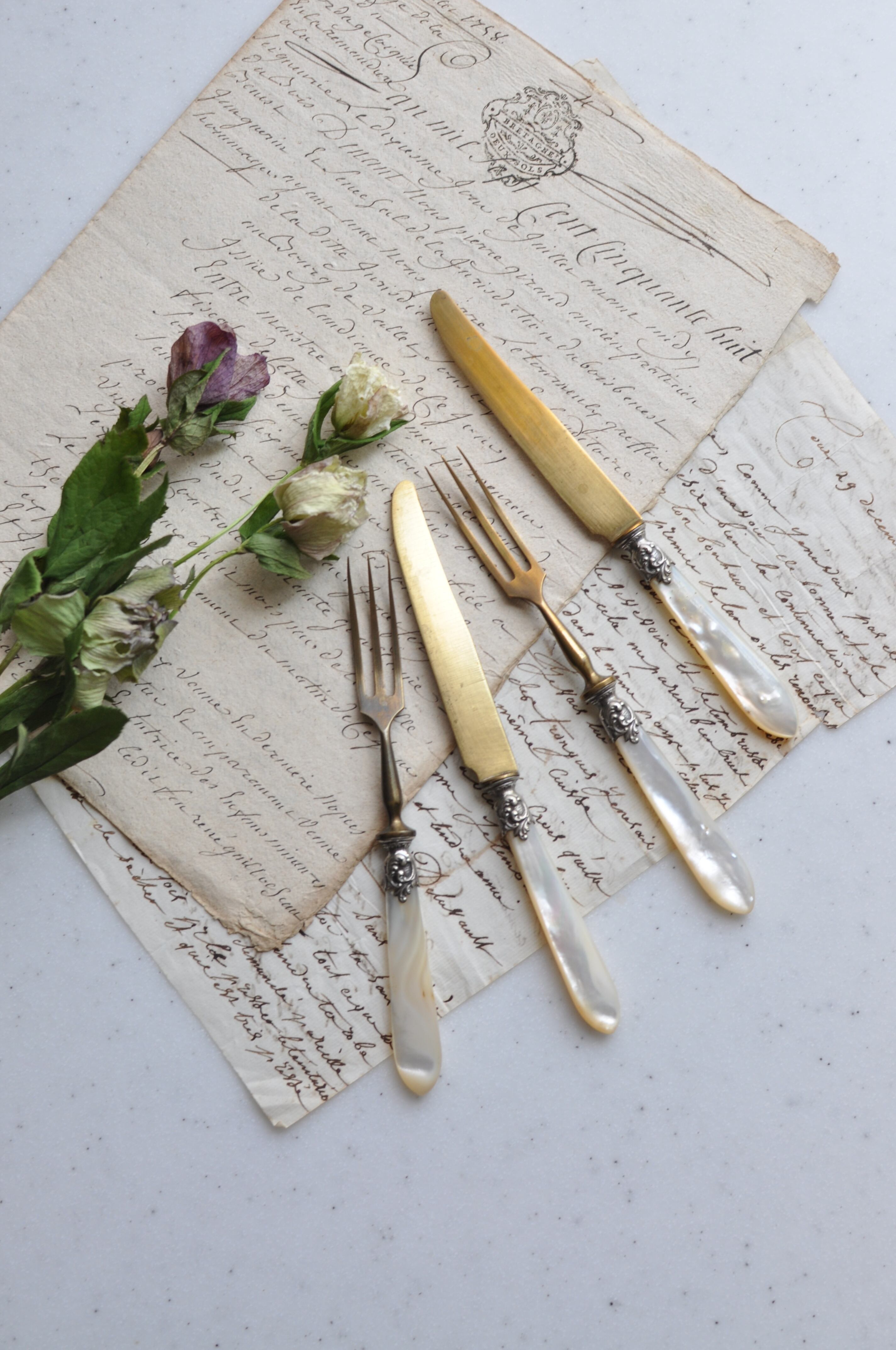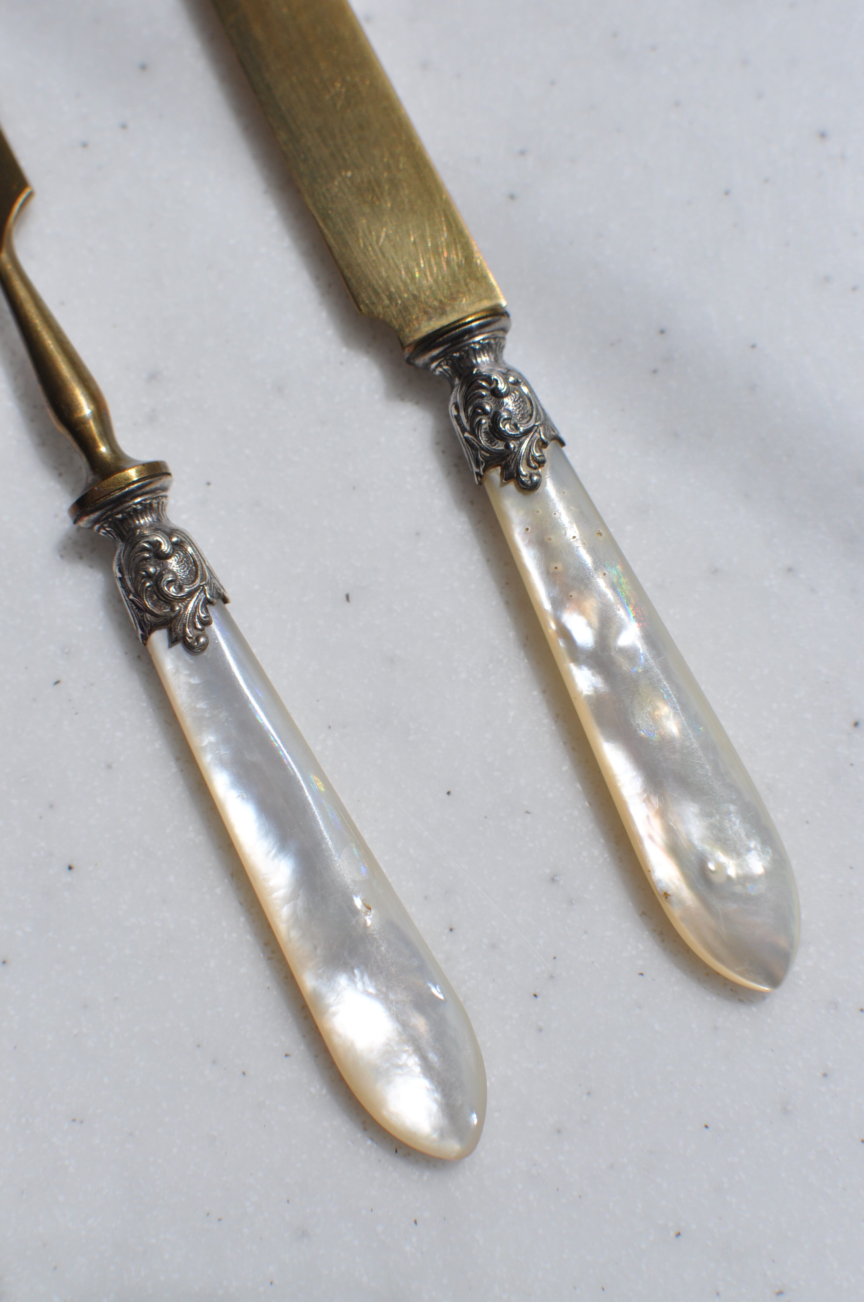 仏 白蝶貝・ 真鍮 デザート用 ナイフ&フォーク (3162-A)