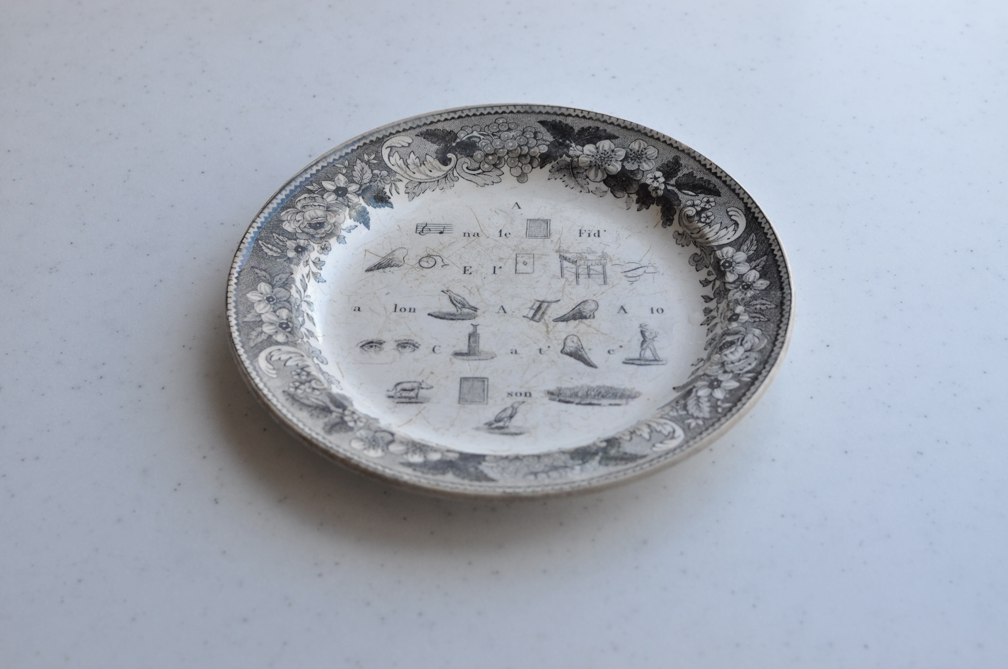 Montereau / Grisaille グリザイユ なぞなぞ皿 (3014) フランスアンティーク