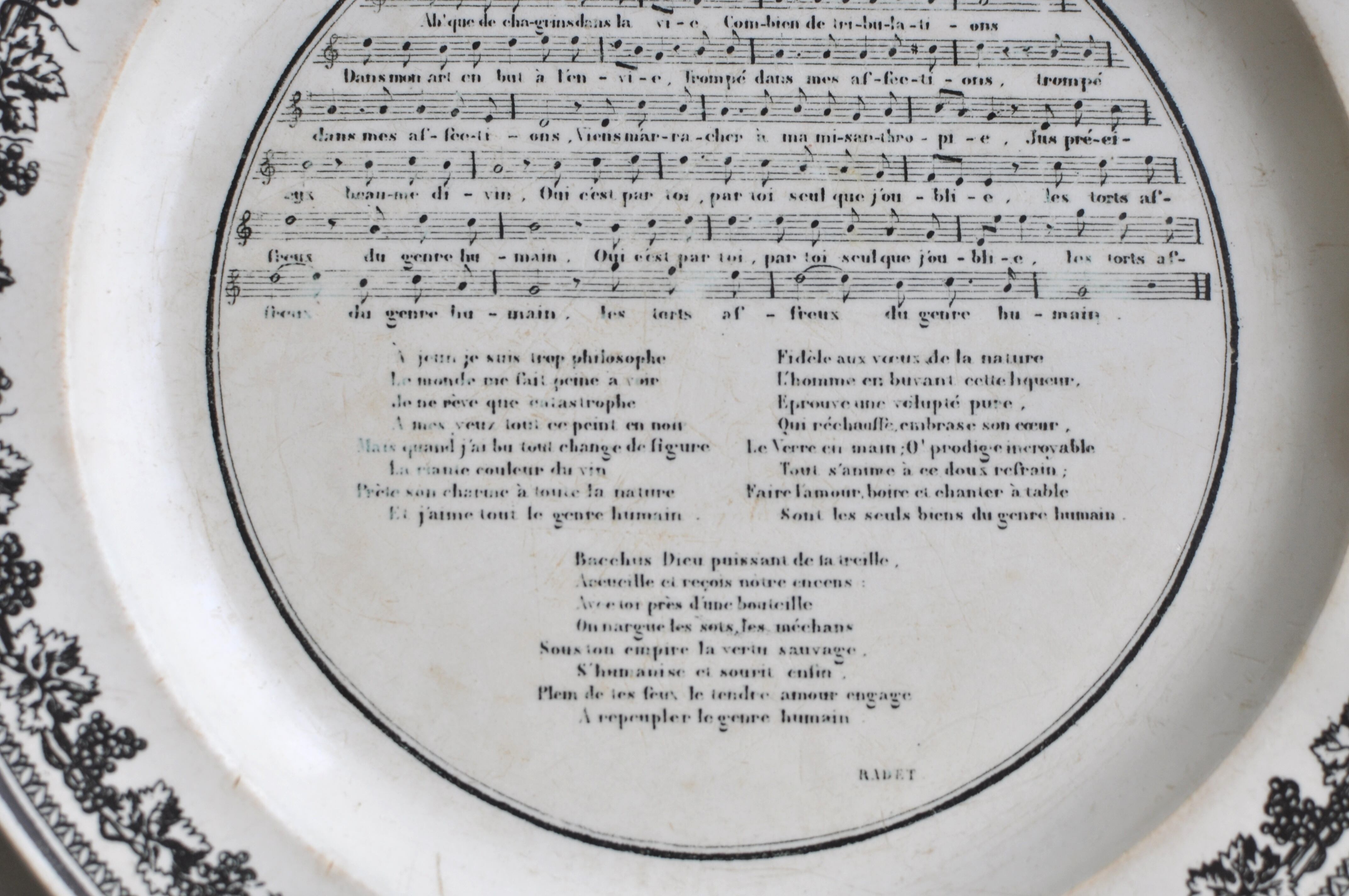 ★蚤の市 ダメージあり creil /グリザイユ シャンソンプレート 楽譜 (3585) フランスアンティーク