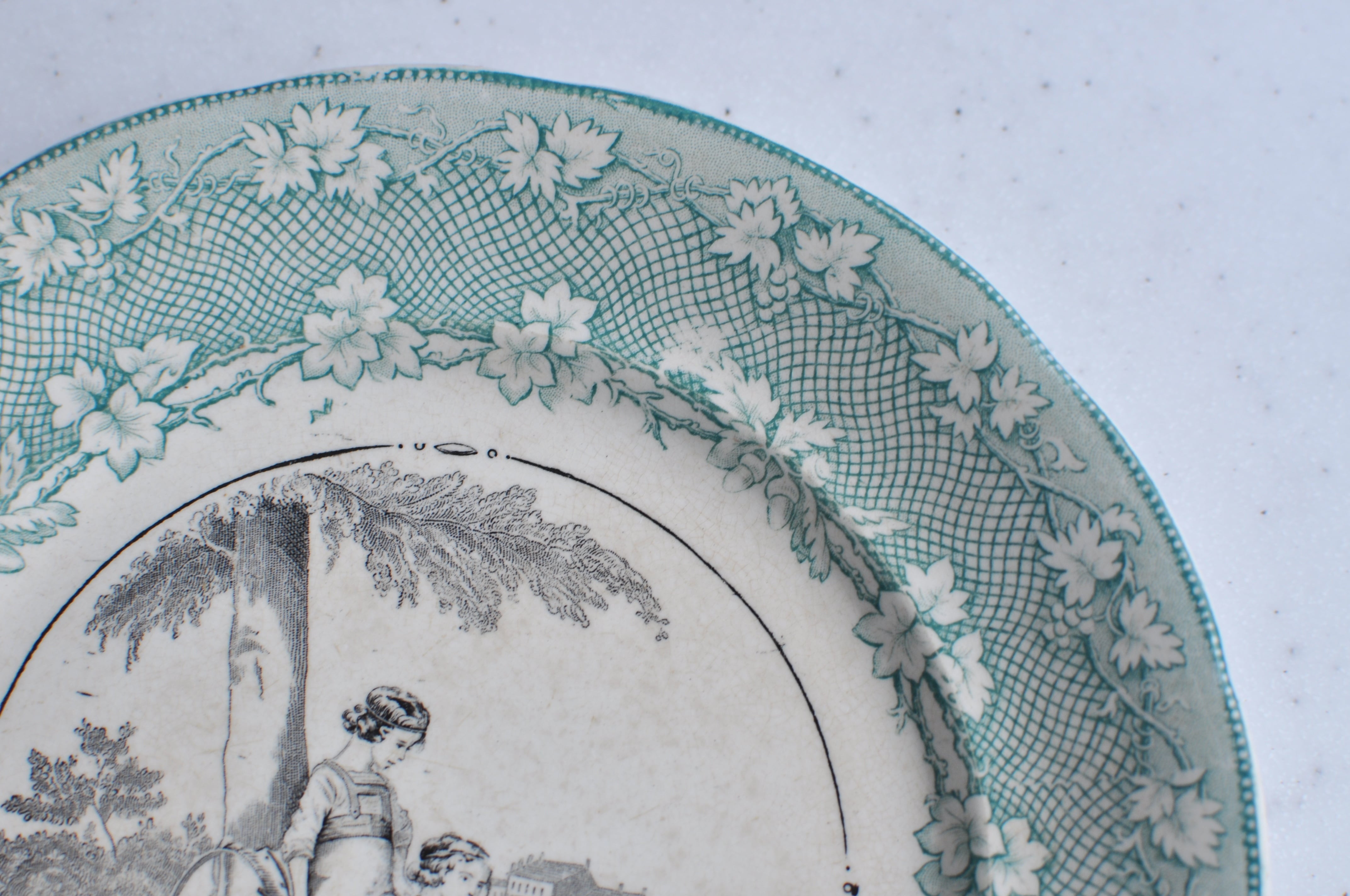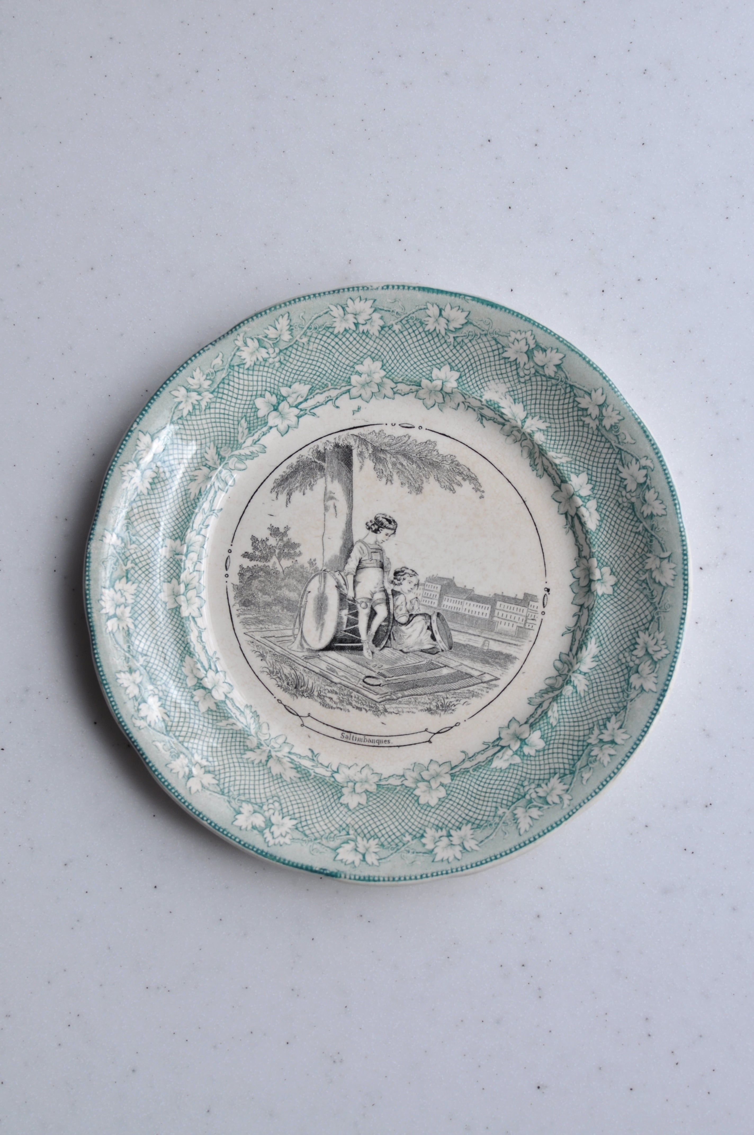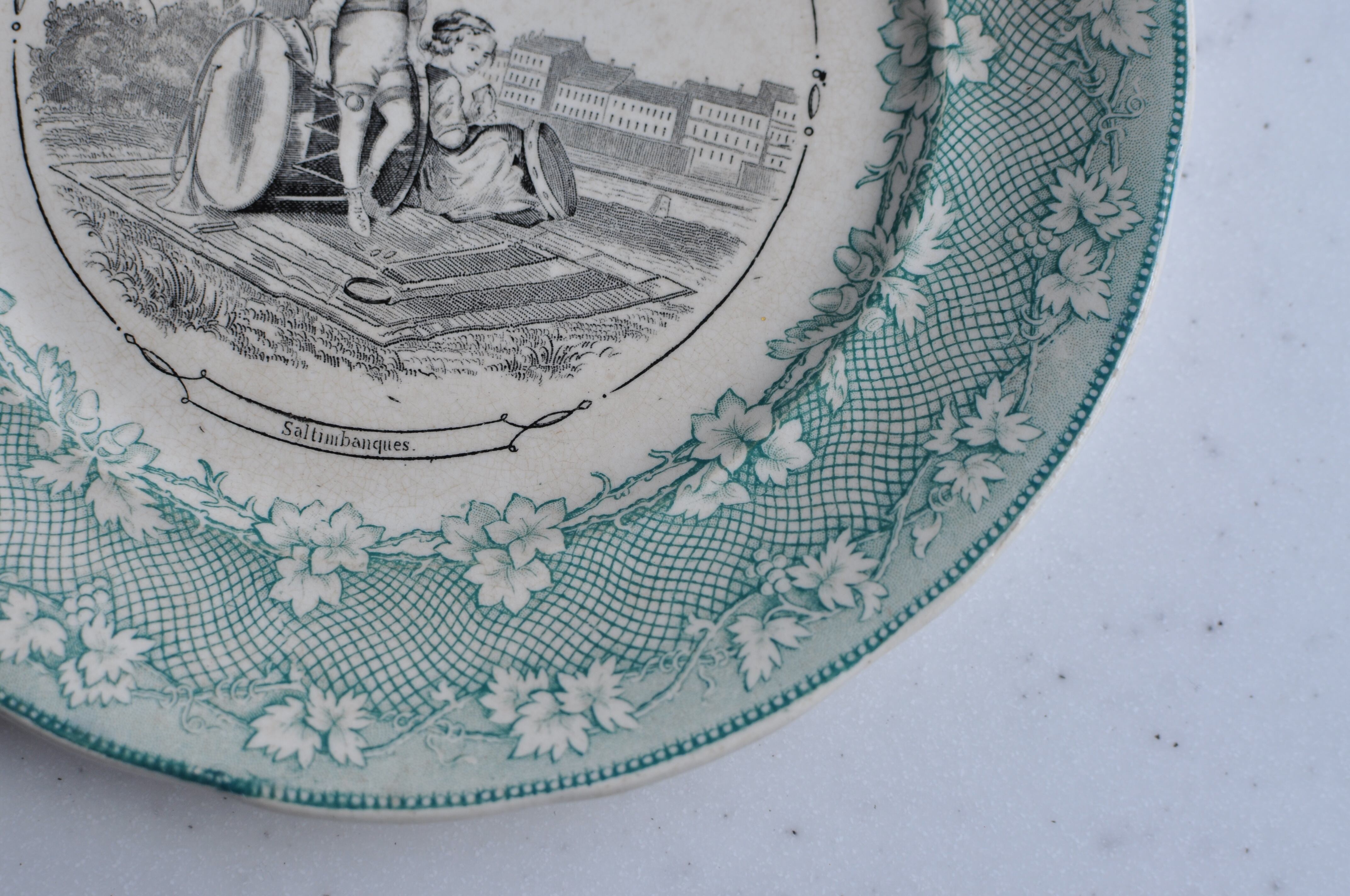 Sarreguemines / (2707) Green talking plate ~saltimbanques ~ / フランス アンティーク